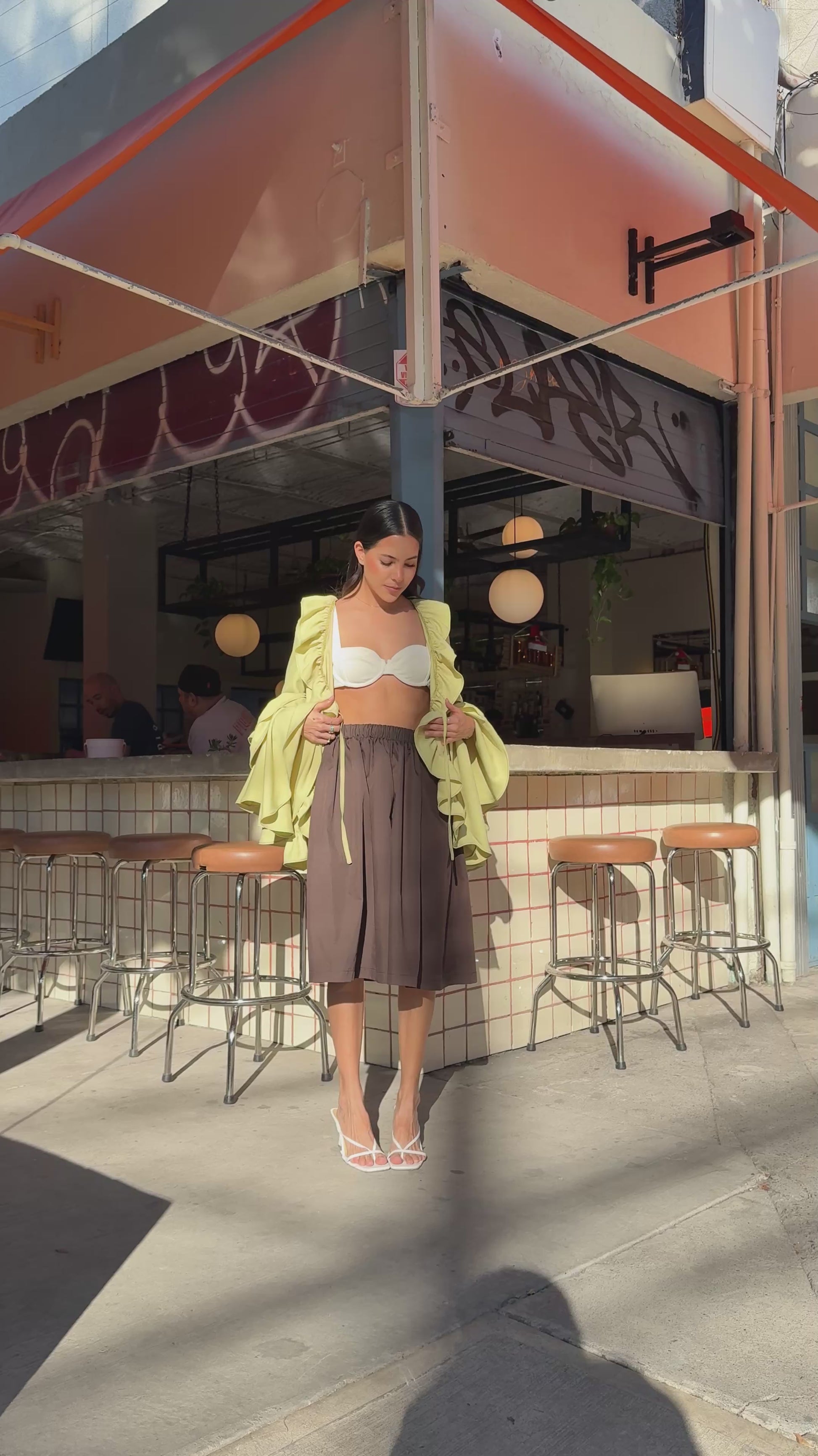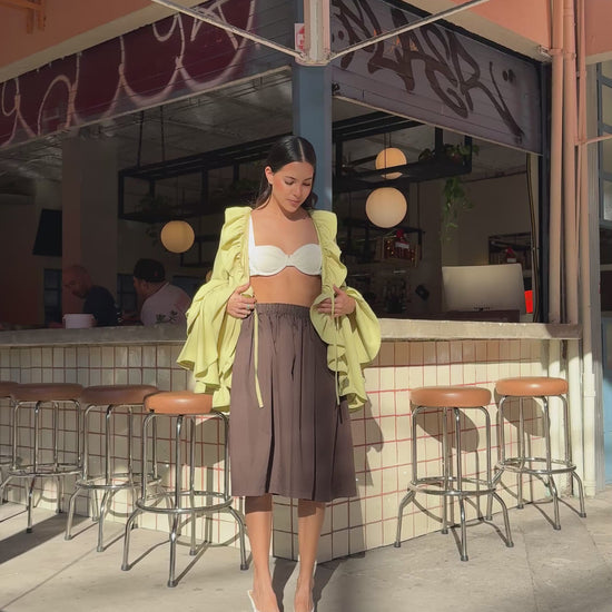 Blusa de amarre con olanes y maxi mangas.