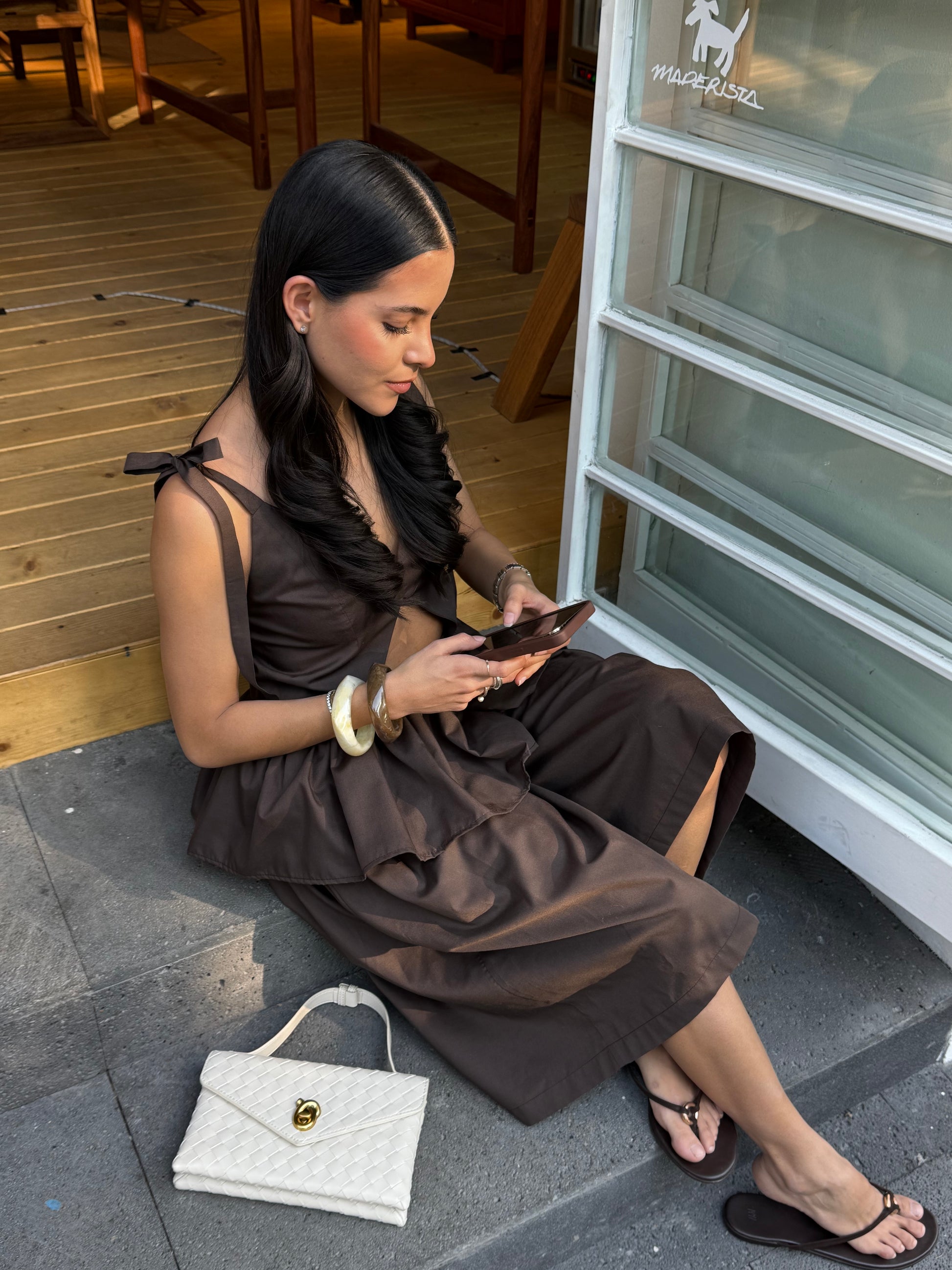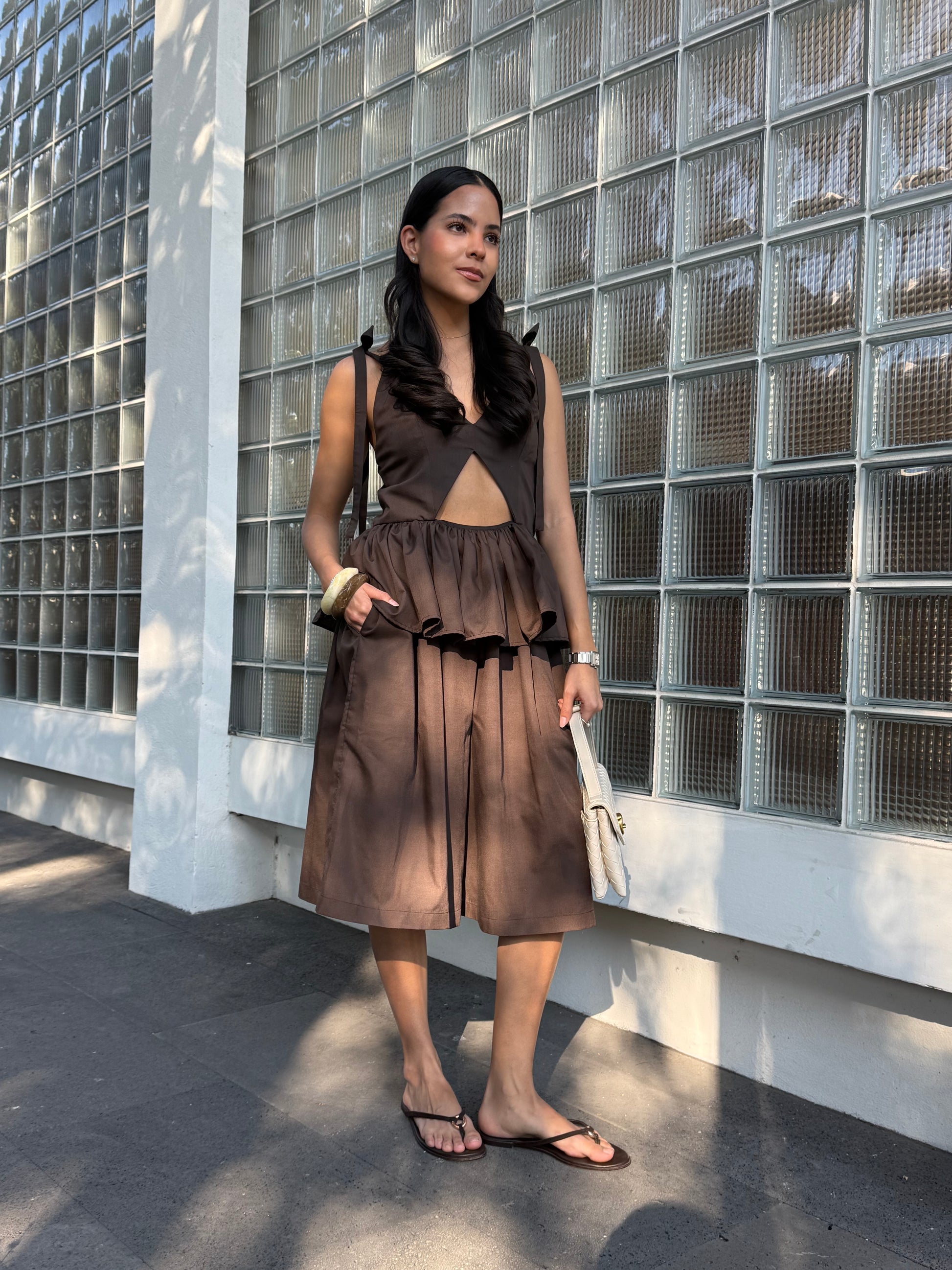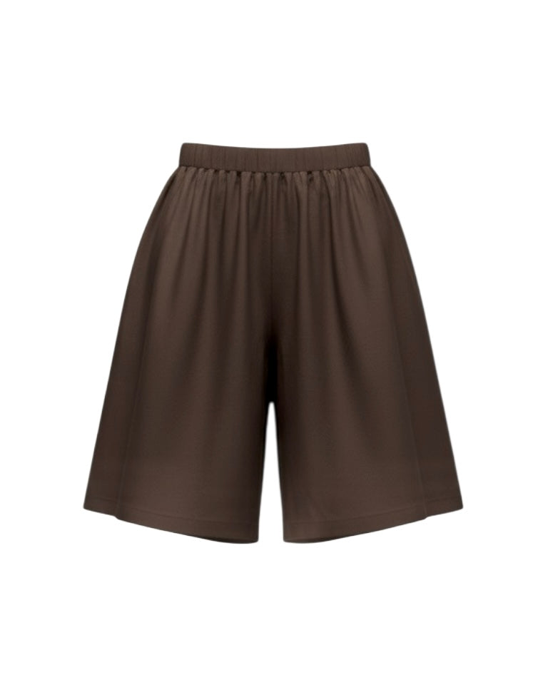 Bermuda larga de popelina con cintura elástica y bolsillos laterales. Silueta amplia, cómoda y ligera, ideal para un look relajado y versátil.